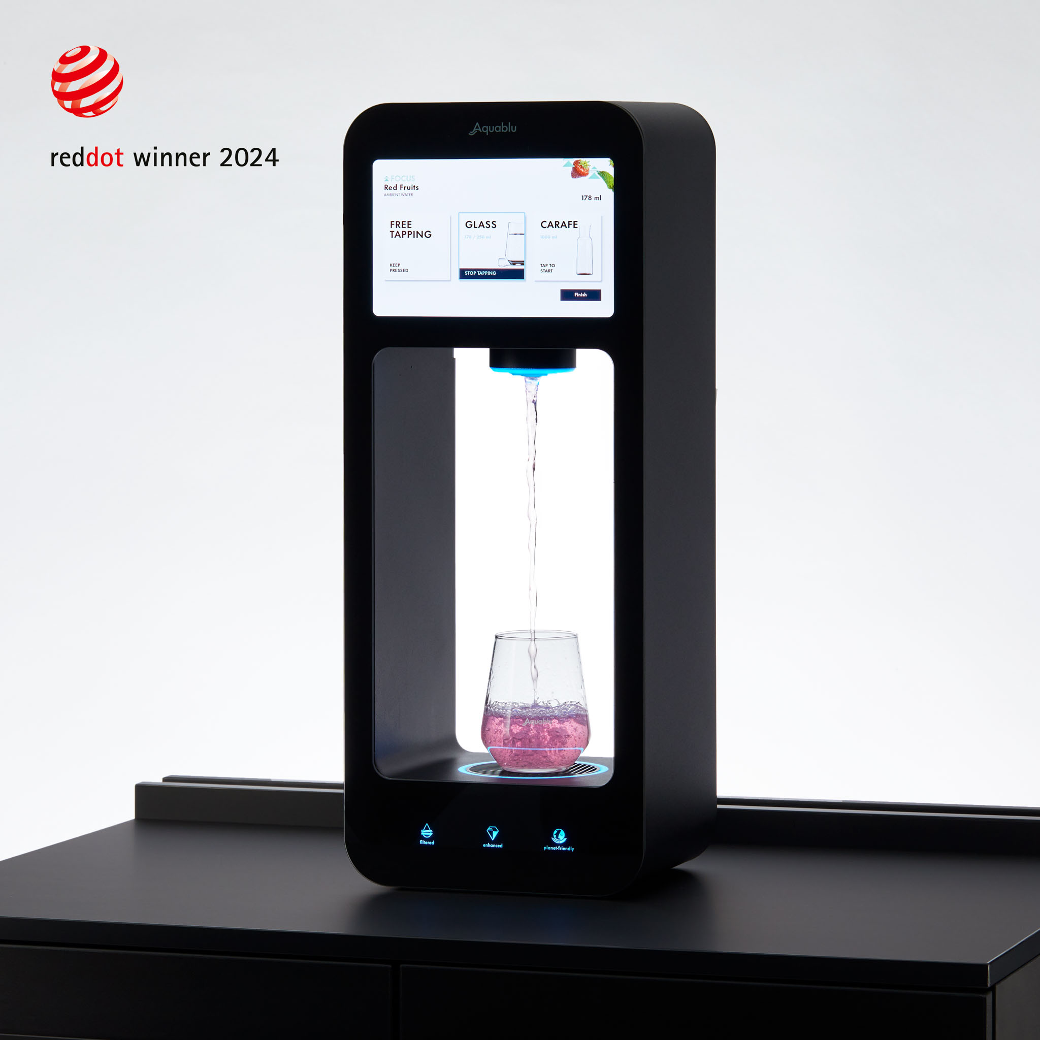 Aquablu’s REFILL+, biedt gekoeld, bruisend of plat functioneel water met natuurlijke smaken, elektrolyten en vitamines. Ontwikkeld voor kantoren, hotels en publieke ruimtes, vervangt het flessenwater en frisdrank door een gezonder, aantrekkelijker alternatief, en elimineert het gebruik van single-use plastic.